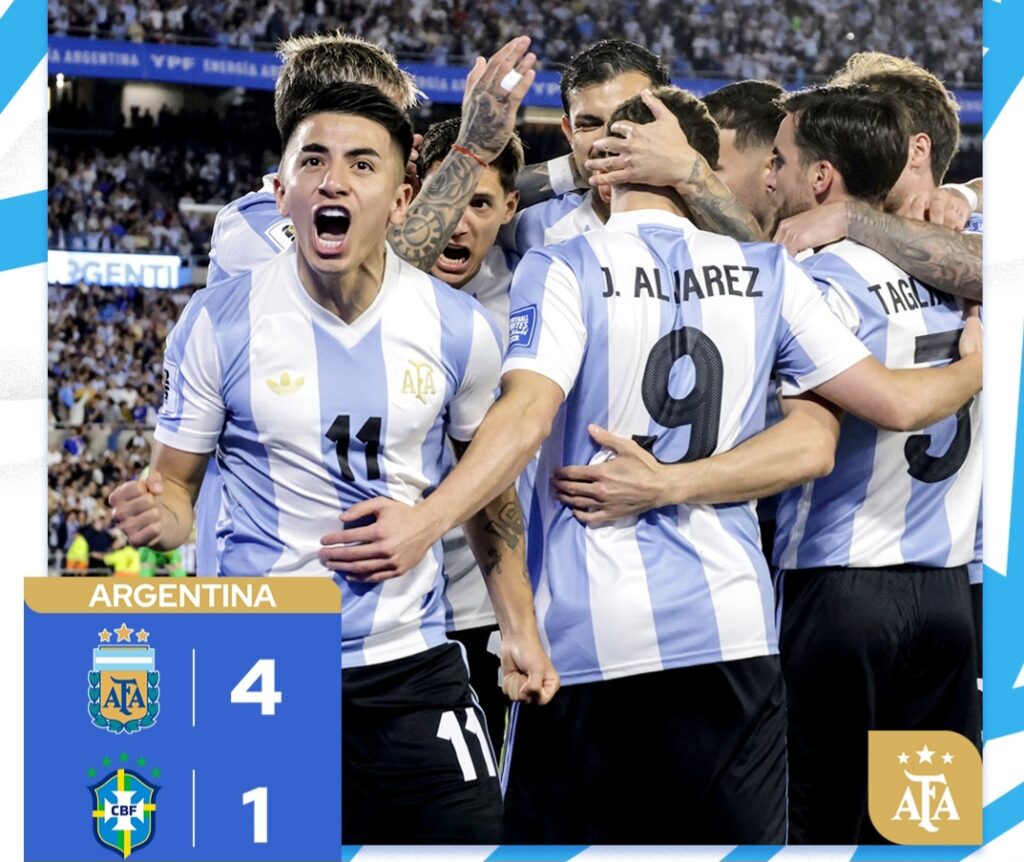 Foi a primeira vez na história que o Brasil sofreu quatro gols em uma partida das Eliminatórias. Alvarez, Enzo, Mac Allister e Giuliano Simeone marcaram para os argentinos, e Matheus Cunha descontou para a Seleção.
