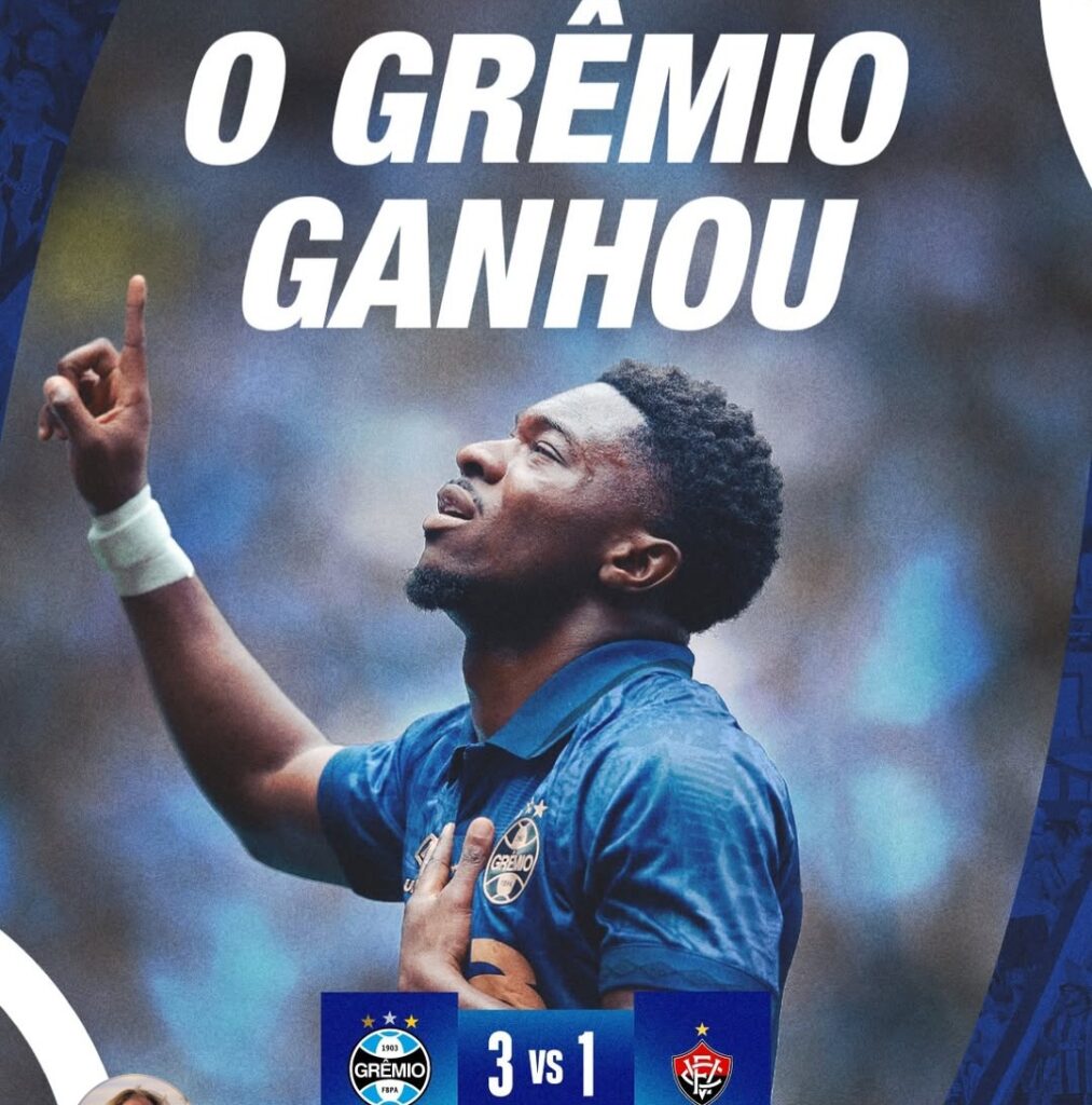 O Grêmio, enfim, voltou a vencer na Arena. O Tricolor fez 3 a 1 no Vitória, que teve a estreia do técnico Jair Ventura, e encerrou um jejum de dois meses sem ganhar como mandante. André Henrique, Amuzu e Aravena marcaram para o Grêmio, enquanto Aitor descontou para o Vitória.