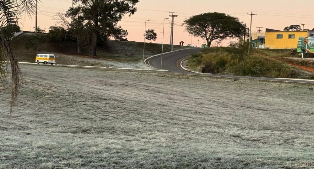 Na manhã gelada desta terça-feira (2), um homem foi flagrado deitado sobre a geada, próximo ao viaduto de acesso à cidade de São Sepé.