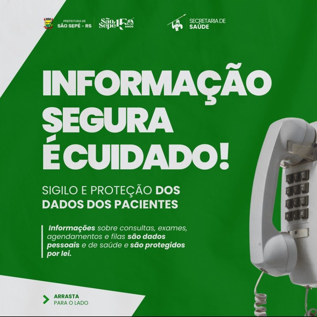 A Secretaria Municipal de Saúde de São Sepé reforça seu compromisso com a segurança, o sigilo e o uso responsável das informações dos pacientes. Dados relacionados a consultas, exames, agendamentos e filas de espera são considerados pessoais e sensíveis, exigindo cuidados específicos no tratamento e na divulgação.