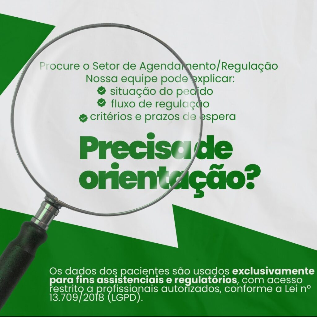 Quem precisar de esclarecimentos deve procurar o Setor de Agendamento/Regulação, onde a equipe está preparada para orientar, de maneira segura e transparente, sobre: