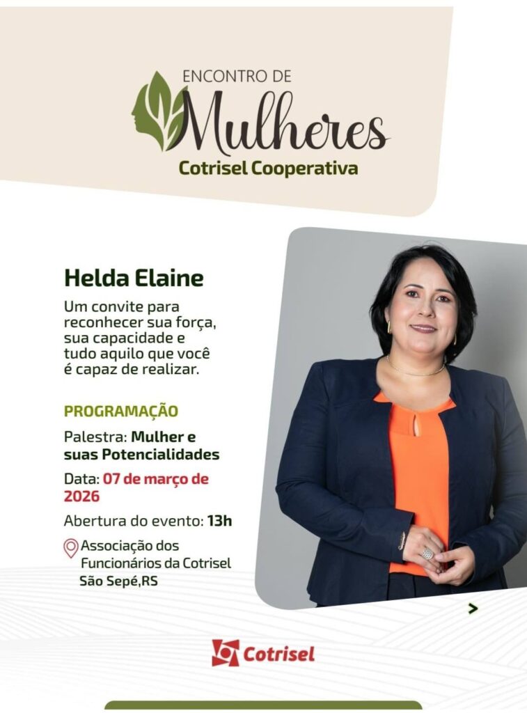 A força feminina que move o cooperativismo estará reunida em mais uma edição especial do Encontro de Mulheres da Cotrisel. Em 2026, o evento chega com a proposta de fortalecer conexões, valorizar trajetórias e criar um espaço ainda mais significativo de troca entre mulheres que fazem parte da história da cooperativa.