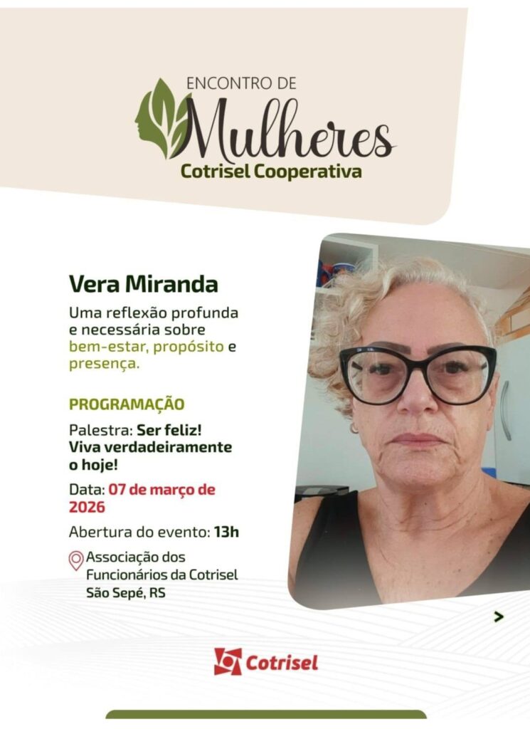 O encontro será realizado no dia 07 de março de 2026, às 13h, na Associação dos Funcionários da Cotrisel, reunindo associadas, esposas e filhas de associados para uma tarde dedicada à inspiração, ao diálogo e ao fortalecimento de laços.