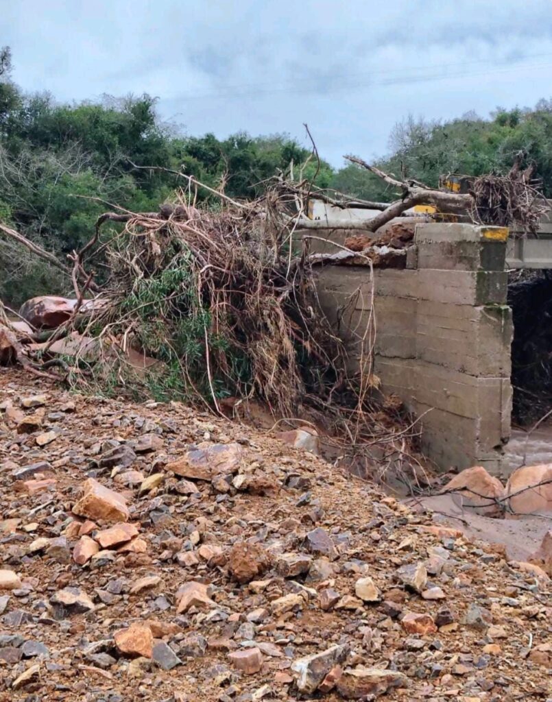 Ponte do São Rafael bloqueada. As fortes chuvas que arrastaram muitas árvores e galhos, rompeu as cabeceiras da ponte do Arroio São Rafael, interior de São Sepé. O nível da água baixou a tarde e foi possível ver a dimensão dos estragos. A ponte havia sido recuperada pela atual administração nesse ano.