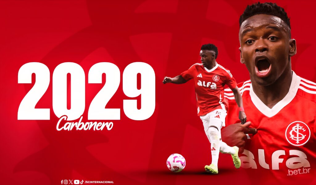 O Sport Club Internacional informa que concluiu as tratativas para a permanência definitiva do atacante Johan Carbonero, com o exercício da opção de compra junto ao Racing Club, da Argentina. O novo contrato com o Clube será válido até 31 de dezembro de 2029.