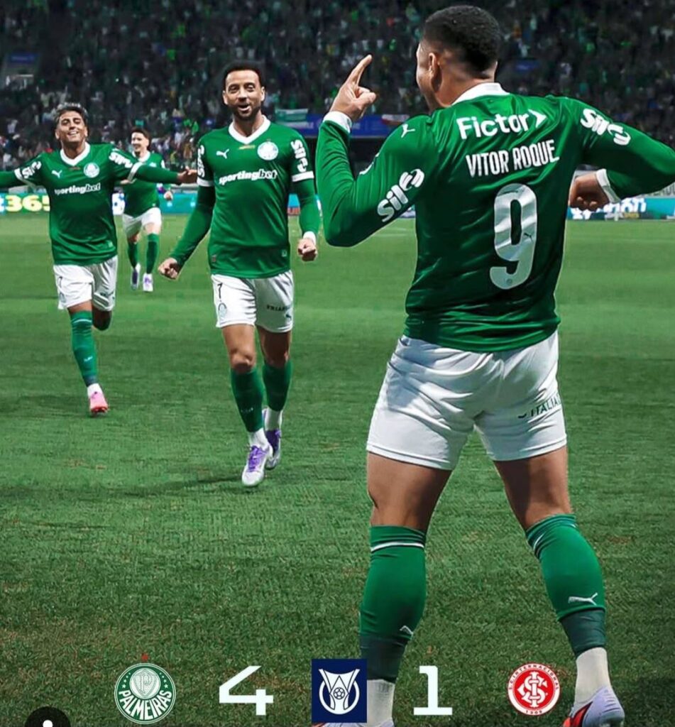 O Verdão precisou de apenas 45 minutos para encaminhar a vitória. Com três gols de Vitor Roque e um de Lucas Evangelista no primeiro tempo, o time paulista abriu 4 a 0. O Colorado descontou na etapa final com Carbonero, mas não conseguiu reagir, encerrando a partida em 4 a 1, pela 23ª rodada do Campeonato Brasileiro.