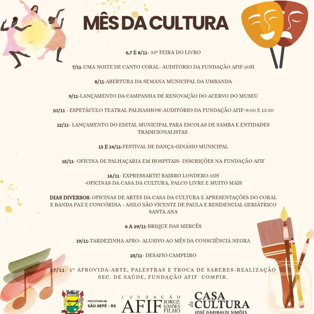 O Mês da Cultura 2025 segue movimentando São Sepé com uma programação que valoriza a arte, a música, o teatro e as tradições locais.