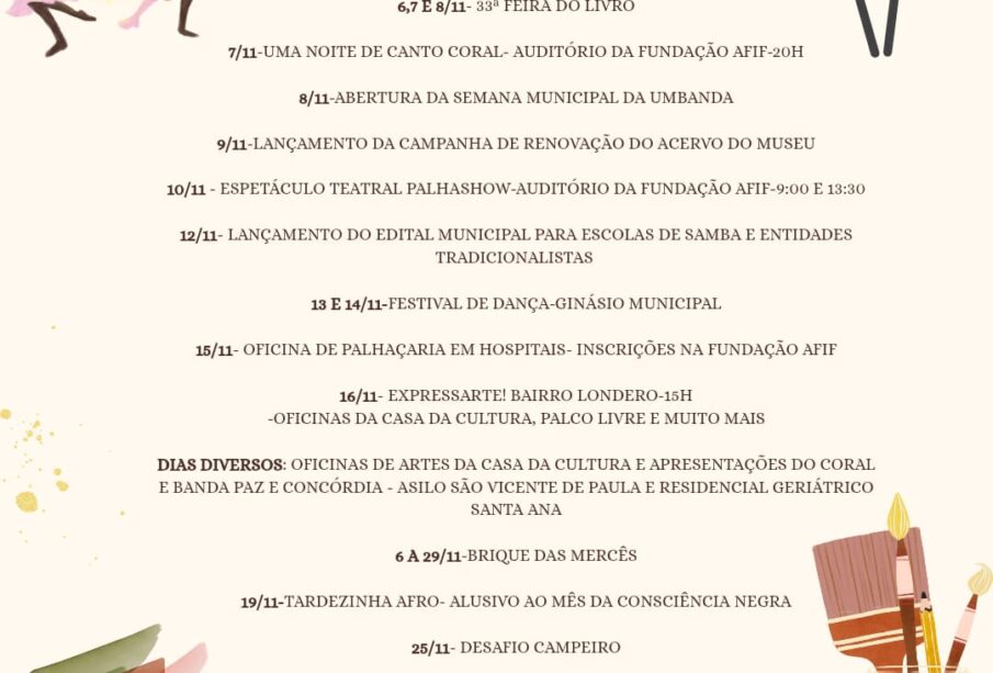 Entre as atividades já realizadas estão a 33ª Feira do Livro — em parceria com a SMED e o CMP —, a Noite de Canto Coral, a Semana da Umbanda e o espetáculo Palhashow.