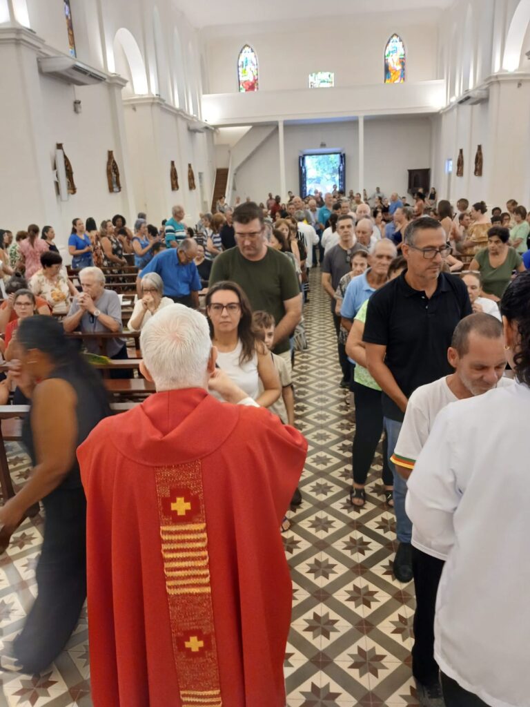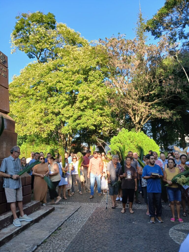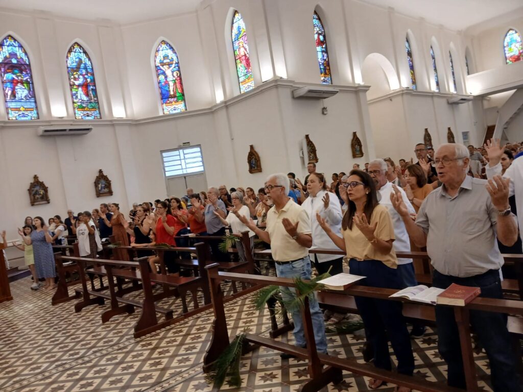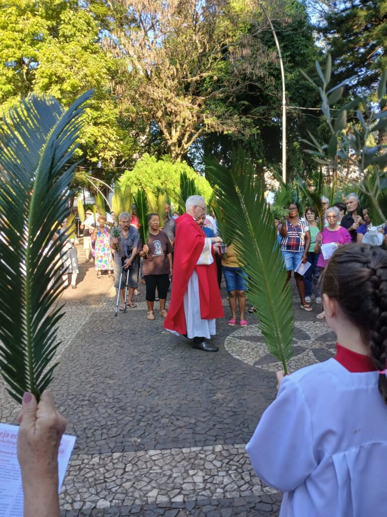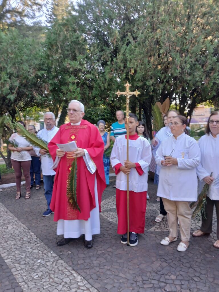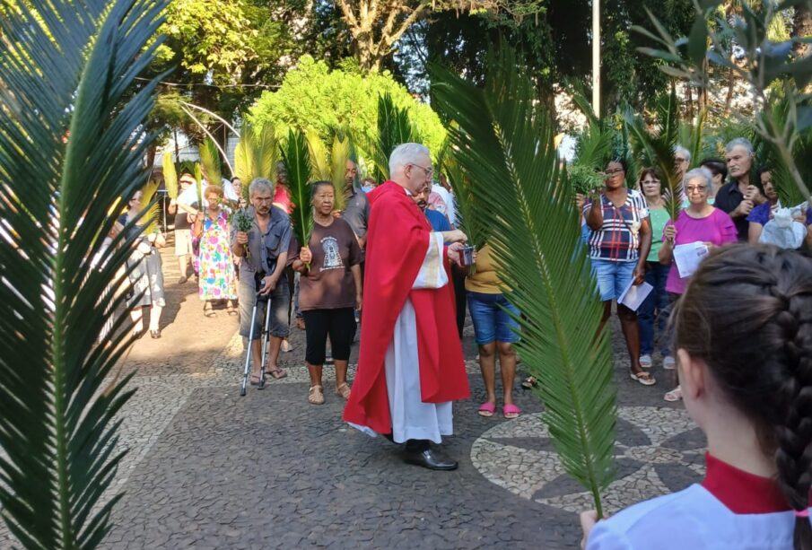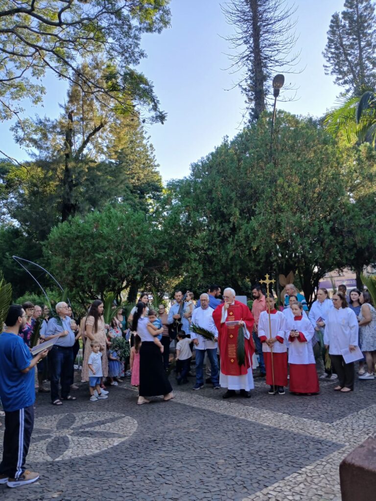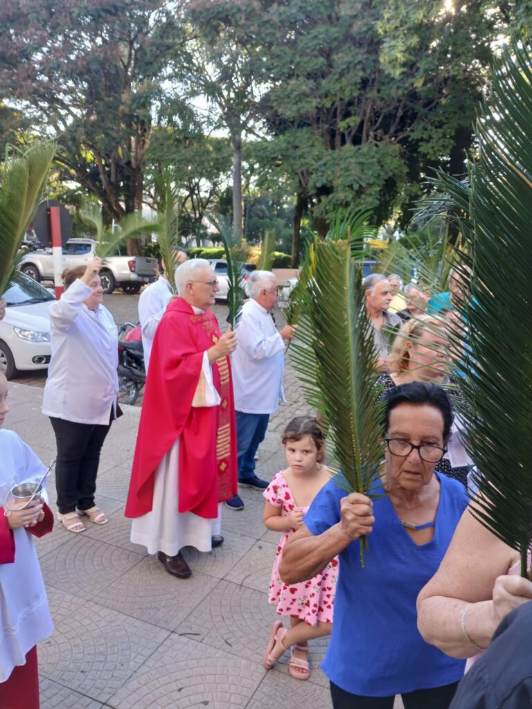 A liturgia incluiu a tradicional bênção dos ramos (palmeiras ou oliveiras), procissão dos fiéis e a proclamação da Paixão do Senhor, convidando à reflexão sobre a fé e o caminho da cruz.