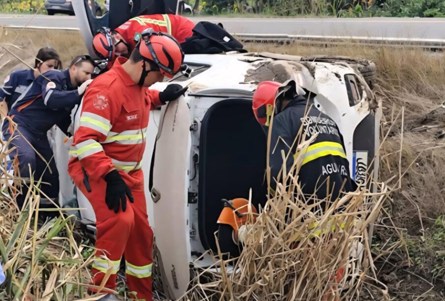 A condutora do veículo, única ocupante, ficou presa às ferragens e sofreu fraturas. Os bombeiros realizaram os procedimentos de extricação utilizando ferramentas específicas para liberar a vítima com segurança. Ela foi removida pelo SAMU de Agudo e encaminhada ao Hospital local.
