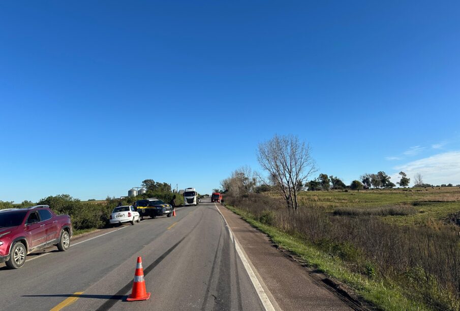 A Polícia Rodoviária Federal (PRF) atendeu a um acidente na BR-293, no km 170, em Bagé, por volta das 8h40 desta segunda-feira. O trânsito no local permaneceu em meia pista até as 10h30 para a remoção dos veículos envolvidos.