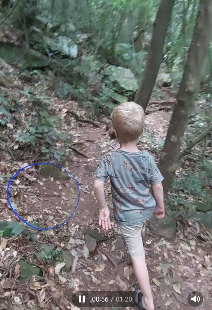 A cena se passava numa trilha da comunidade da Terceira Légua, no interior. Nas imagens, vê-se um pai atento, indicando ao menino onde colocar os pés e, volta e meia, oferecendo a mão para que ele se equilibrasse entre as pedras. De repente, Leandro grita: “Óóó! Sai, sai, sai…”. O menino salta assustado (foto) e diz: “Uma ‘coba’, uma ‘coba’!”. E o pai, ainda retomando o fôlego, confirma: “É… uma baita duma cobra!”. Davizinho se arrepia: “Ai, que medo!”.