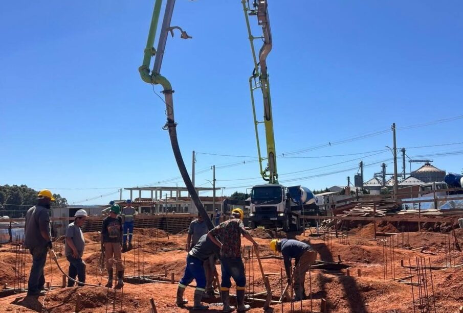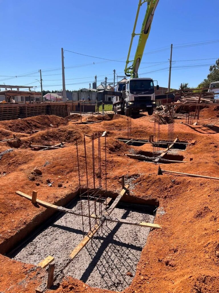 A construção da nova Estratégia Saúde da Família (ESF) do loteamento Noé Miranda continua em ritmo acelerado. Na última sexta-feira, dia 12, foi realizada a concretagem das fundações da unidade, etapa fundamental que garante a base e a segurança da futura estrutura.