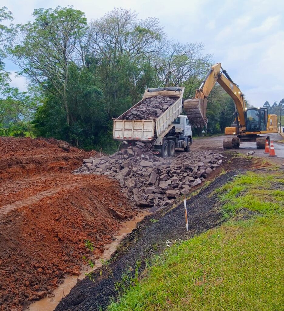 Ja no Arroio Barriga, entre Novo Cabrais e Paraíso do Sul as obras progrediram com a ampliação do desvio e a construção de aterros em rocha, garantindo a continuidade do tráfego local.
