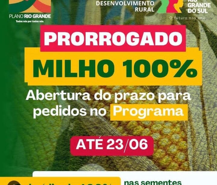 O prazo para solicitar pedidos no Programa Milho 100% foi prorrogado até o dia 23 de junho.