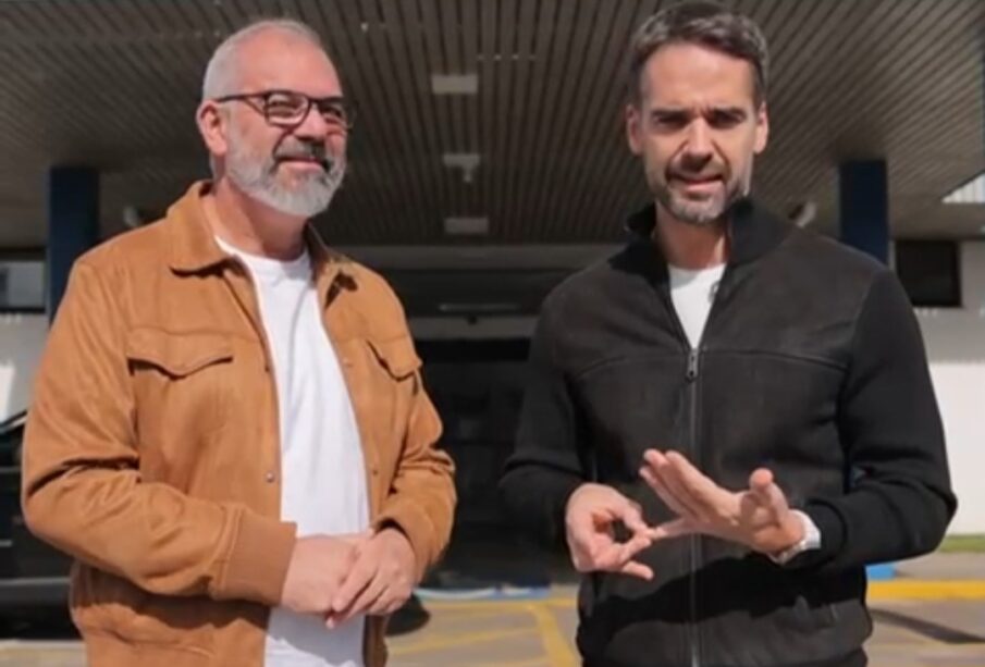 O prefeito Rodrigo Decimo recebeu, na manhã deste domingo (1º), o governador Eduardo Leite em Santa Maria. Antes de seguirem para o aniversário do secretário estadual de Sistema Penal e Socioeducativo, Jorge Pozzobom, o prefeito e o governador tiveram uma reunião no aeroporto municipal.