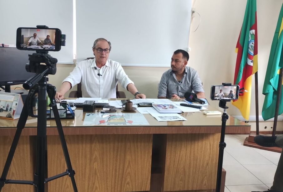 Na manhã desta terça-feira, dia 4, o prefeito Marcelo Ellwanger e o vice-prefeito Rodrigo Ferreira receberam os veículos de comunicação para uma coletiva de imprensa no gabinete do Executivo Municipal.