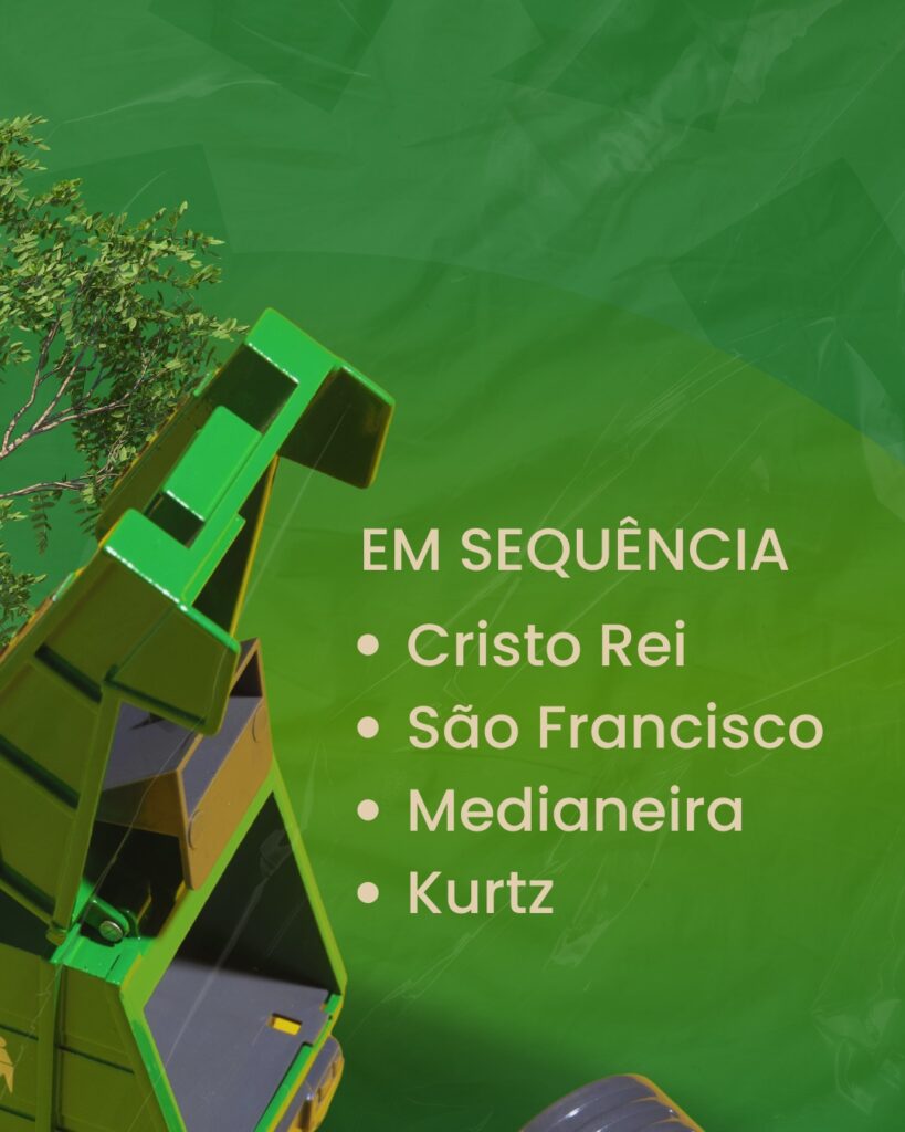A Administração Municipal orienta que os moradores coloquem os materiais em frente às residências, de forma organizada e com antecedência, facilitando o trabalho das equipes responsáveis pelo recolhimento.