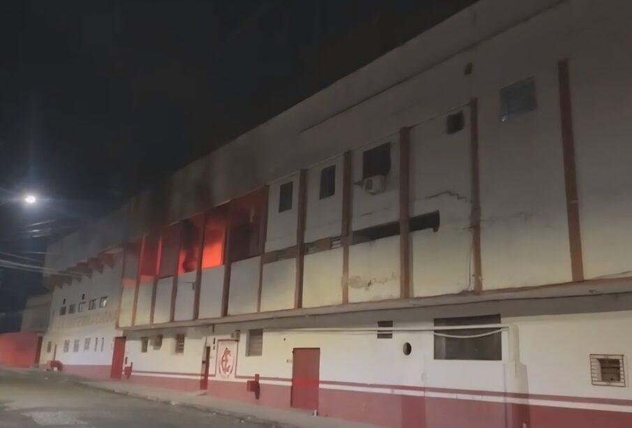 O estádio fica localizada no Bairro Noal. Conforme informações, o fogo teria começado a partir do superaquecimento de um freezer antigo.
