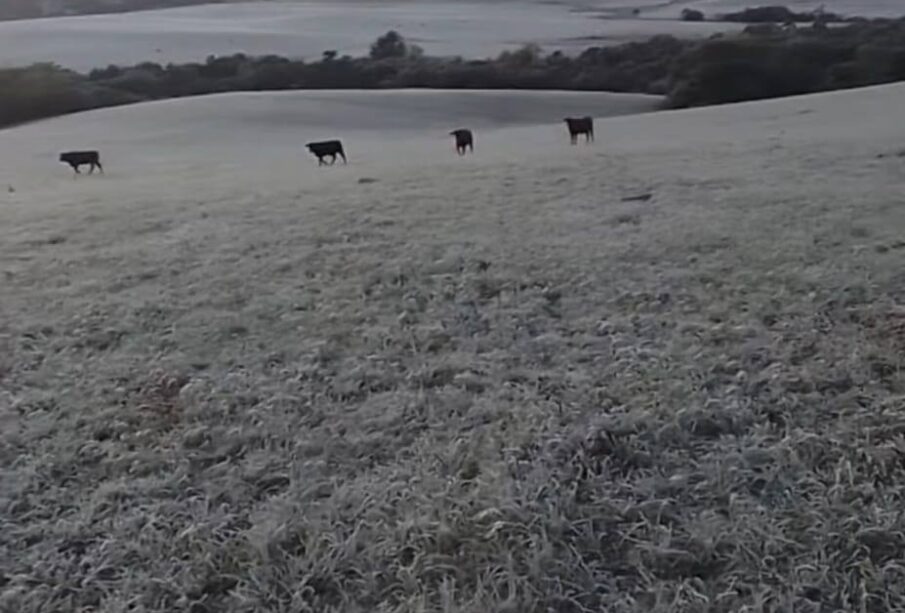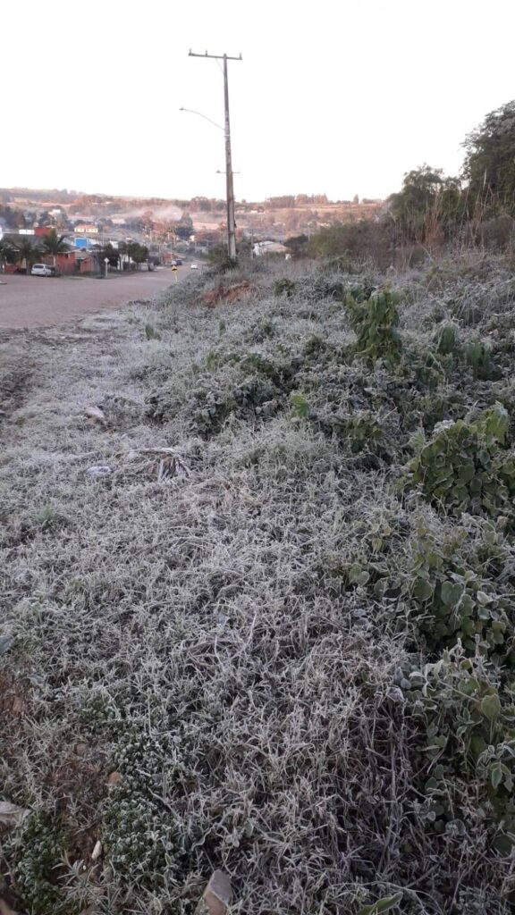 Uma forte massa de ar polar ingressou sobre o Centro-Sul do Brasil na terça-feira (24), trouxe o frio em áreas que, mesmo no inverno, têm baixa frequência de geada.