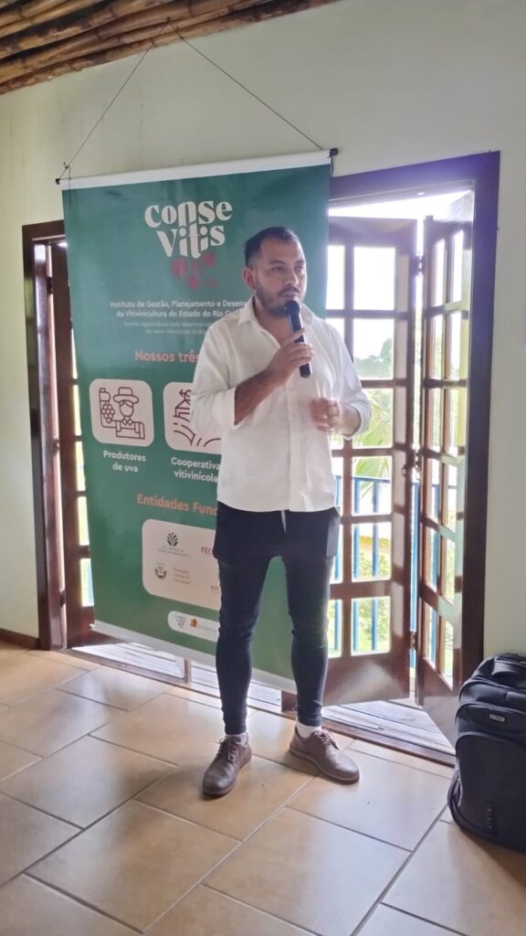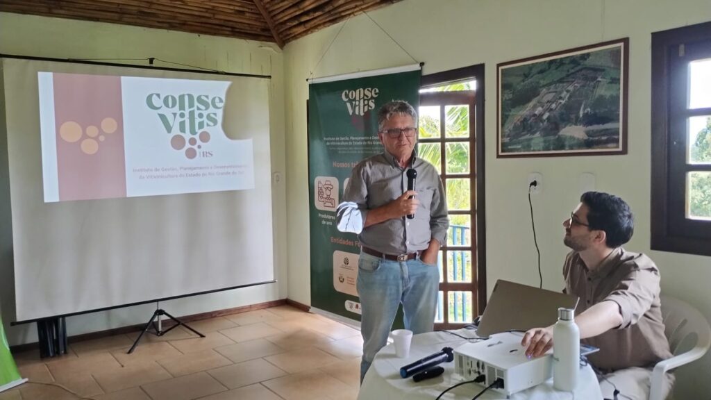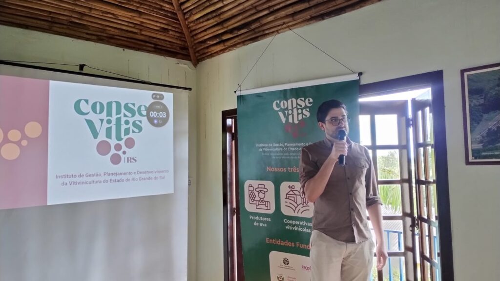 Ao longo da programação, foram abordados temas como a elaboração de vinhos em pequenas vinícolas, planejamento e cuidados no plantio e manejo de vinhedos, além da apresentação das ações do Consevitis-RS.