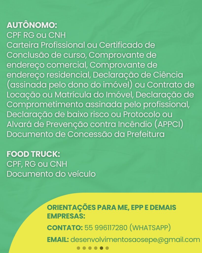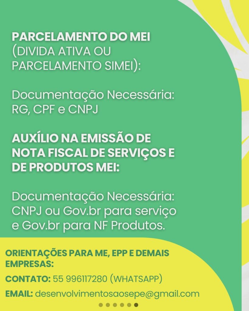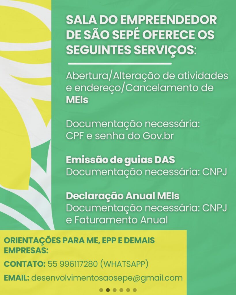 A Sala do Empreendedor de São Sepé está em pleno funcionamento junto à sede da Prefeitura Municipal, oferecendo uma série de serviços voltados ao apoio, orientação e formalização de pequenos negócios no município.
