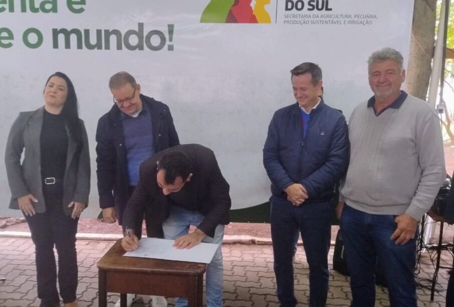 Na manhã desta terça-feira, 03 de junho, o vice-prefeito Rodrigo Ferreira e o secretário de Infraestrutura Valmi Giuliani participaram do Ato de Assinatura de Convênios realizado no auditório da SEAPI, em Porto Alegre. O evento contou com a presença do Secretário de Estado da Agricultura, Edivilson Brum, do Secretário Executivo do Fundo do Plano Rio Grande (Funrigs), Clair Kunh, e da presidente da Federação das Associações de Municípios do Rio Grande do Sul (Famurs), Adriane Perin.