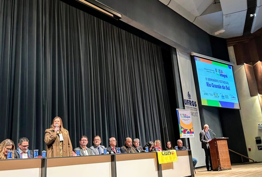 Durante a abertura, Paula Machado representou a presidente da UNDIME/RS, Ana Paula Bennemann, e ressaltou a importância do projeto para os 497 municípios gaúchos que trabalham na ampliação da jornada escolar. “A Escola em Tempo Integral é um projeto grandioso, e reforço aqui o nosso compromisso em representar os municípios comprometidos com a educação pública de qualidade. Que este seminário nos fortaleça para instituir essa política em nossos municípios, garantindo a aprendizagem de nossos alunos”, destacou a secretária.