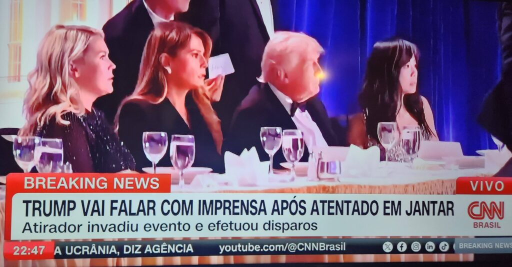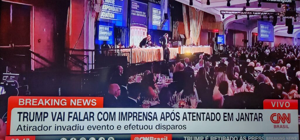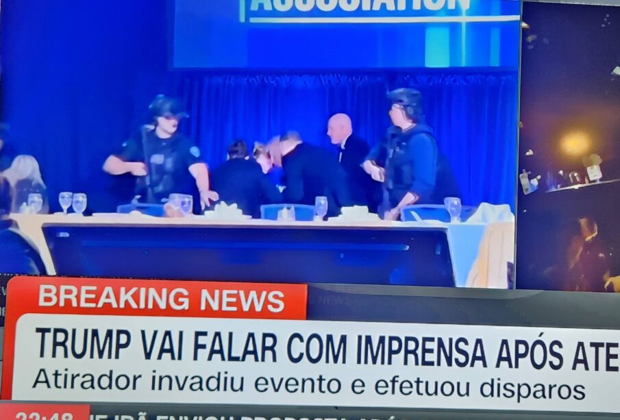 O presidente Donald Trump foi retirado às pressas do palco pelo Serviço Secreto dos Estados Unidos durante o Jantar dos Correspondentes, em Washington, na noite deste sábado (25).